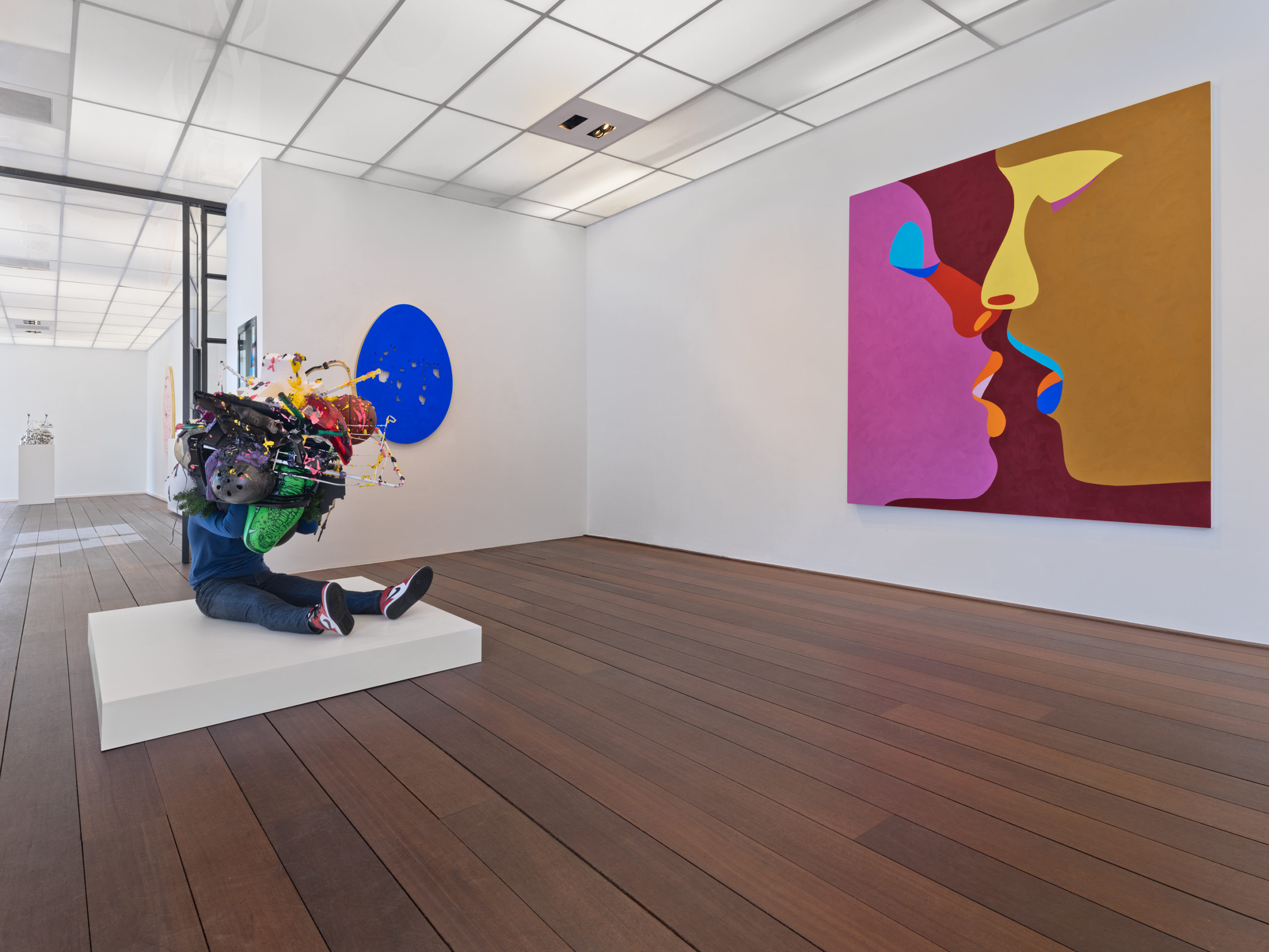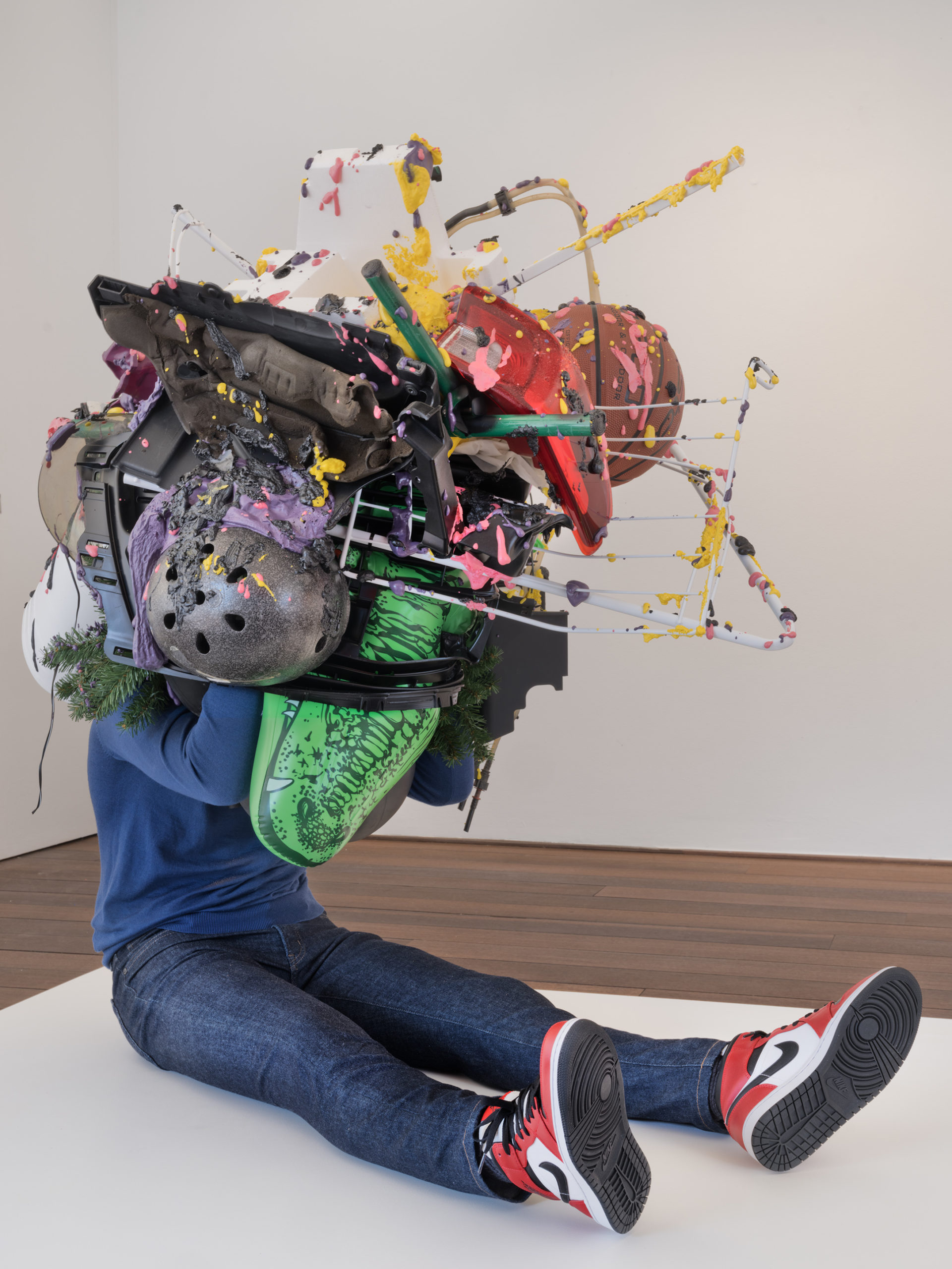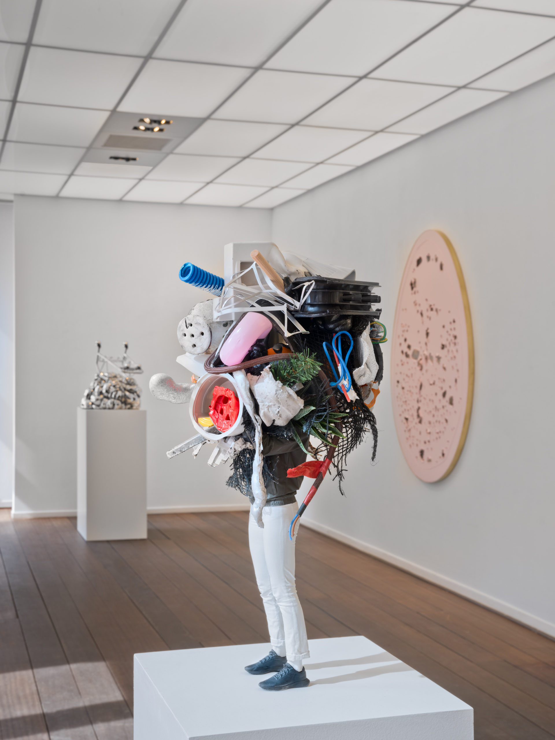 Fragmentation is a working method of each of the artists Reflex invited; they are deeply engaged with the world and visualizing its shards. Daniel Firman conjures up wild sculptures examining human existence as a magnetic force attracting objects, little items stick to a person’s head as a lifesize sculpture of the flux of information we exist in every day. Also fascinated with this, Michael Craig-Martin on highlights items as exhilarating icons of mundanity as he zooms in on bowling balls, phones, and laptops. The artists’ works mirrors and expand one another’s interpretation. Keith Coventry proffers an insight into the recognizability of signs as he showcases parts of the McDonald’s M in his Junk paintings.