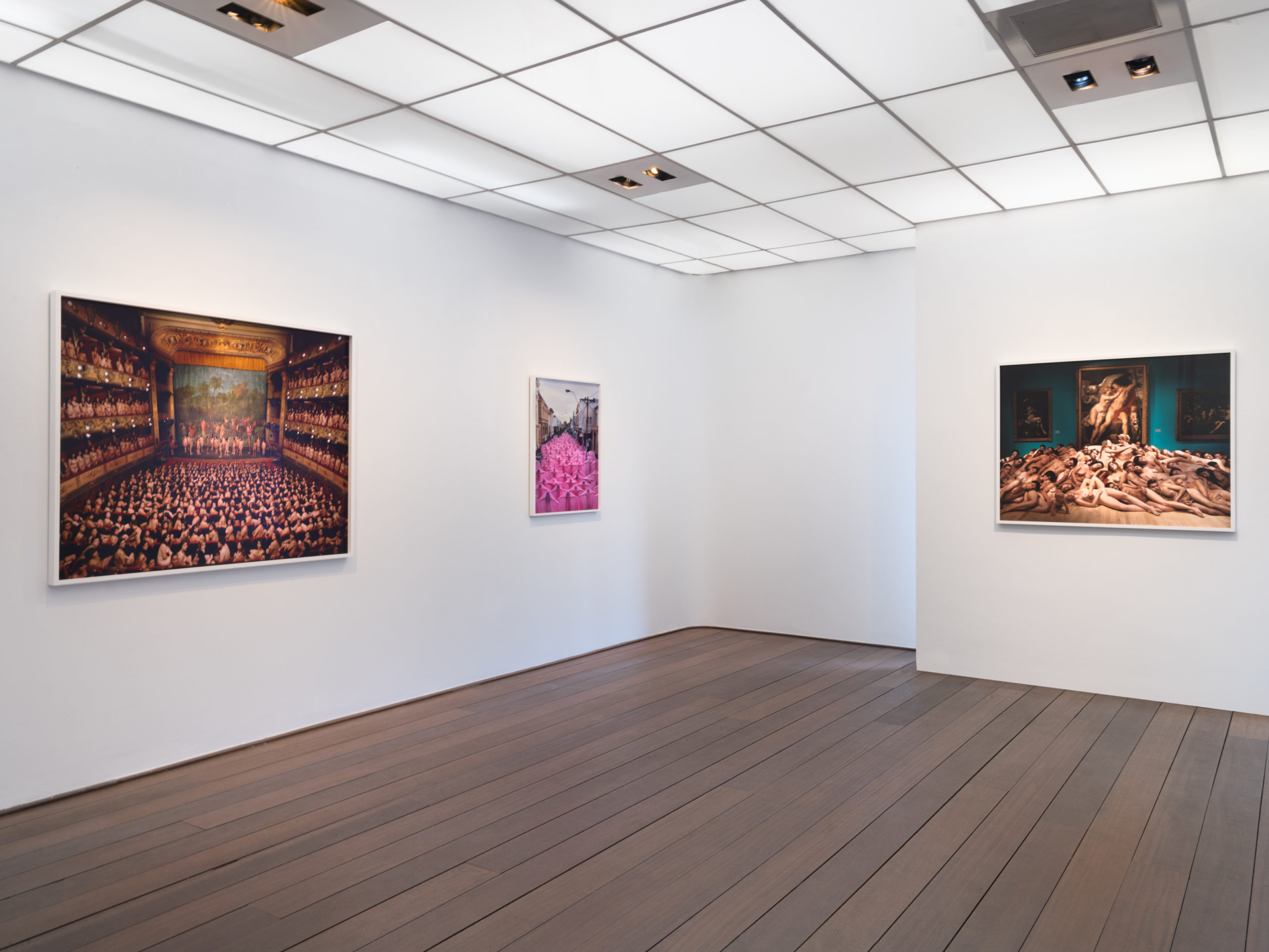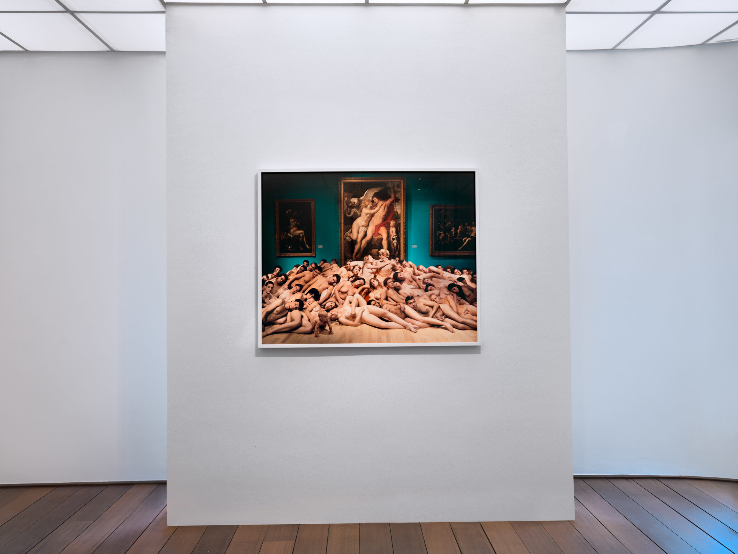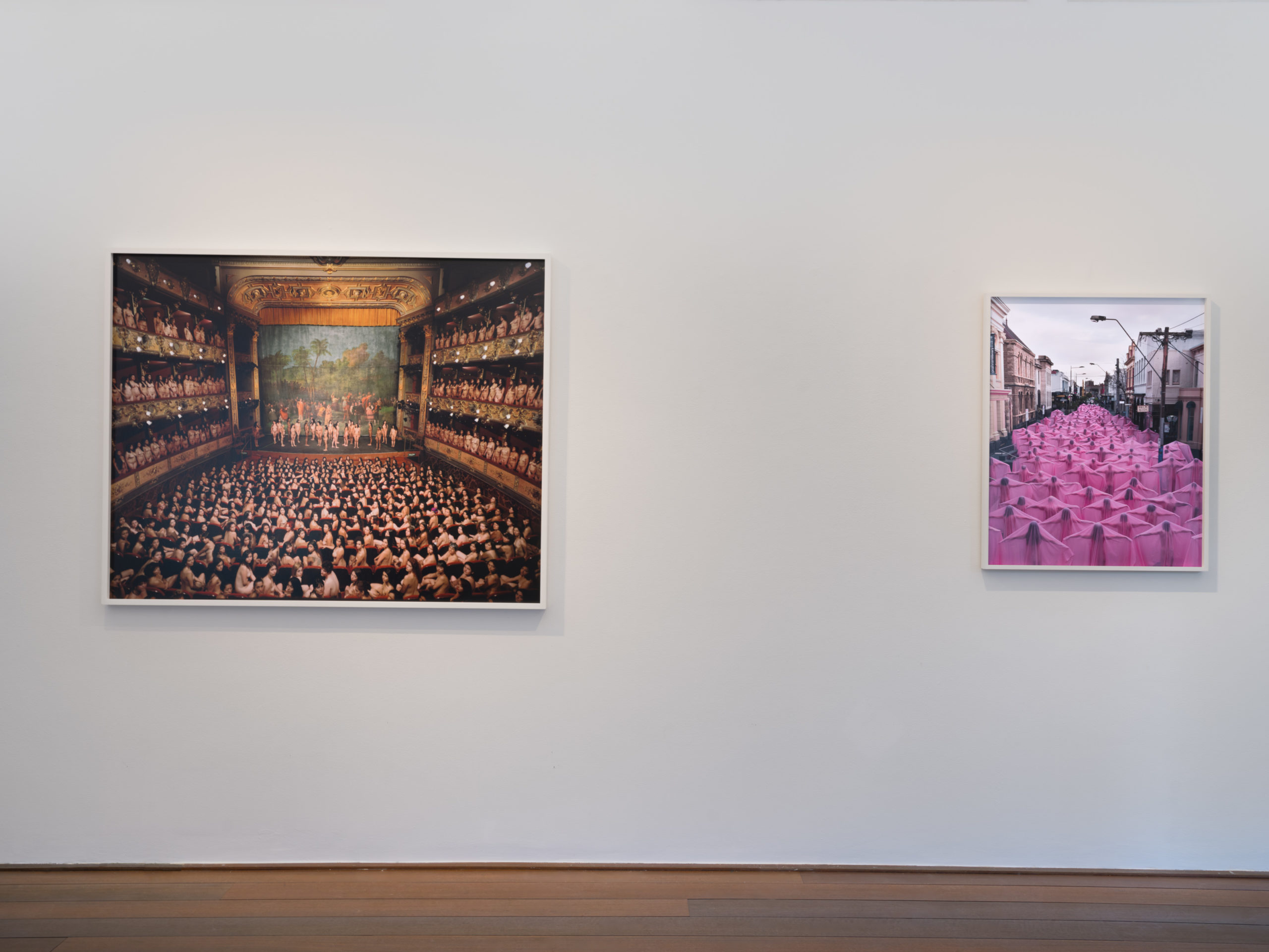 If any genre applies to Spencer Tunick’s oeuvre, it is that of the group photograph. Tunick gathers up to thousands of people, orchestrating their positions with great care. In a time where being photographed nude is a common practice, Tunick elevates the genre to create a meeting point between contemporary art and its audience. This is evident on Columbia, where the gilded environment is brimming with people located at every corner of the frame. However, each seated person has their back turned to the stage, glaring straight at the camera, and as such, eventually gazing at the audience of the photograph. The boundaries between spectated and spectator become blurred as Tunick reveals the complex relationships inherent to photography: the memorialization of a group becomes an electrifying and dynamic moment.