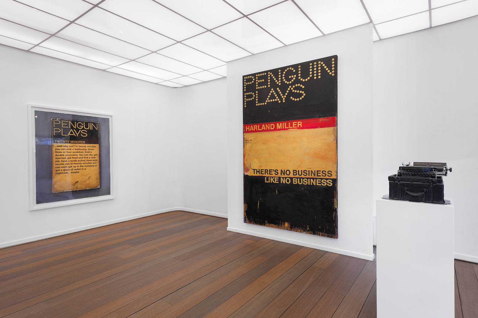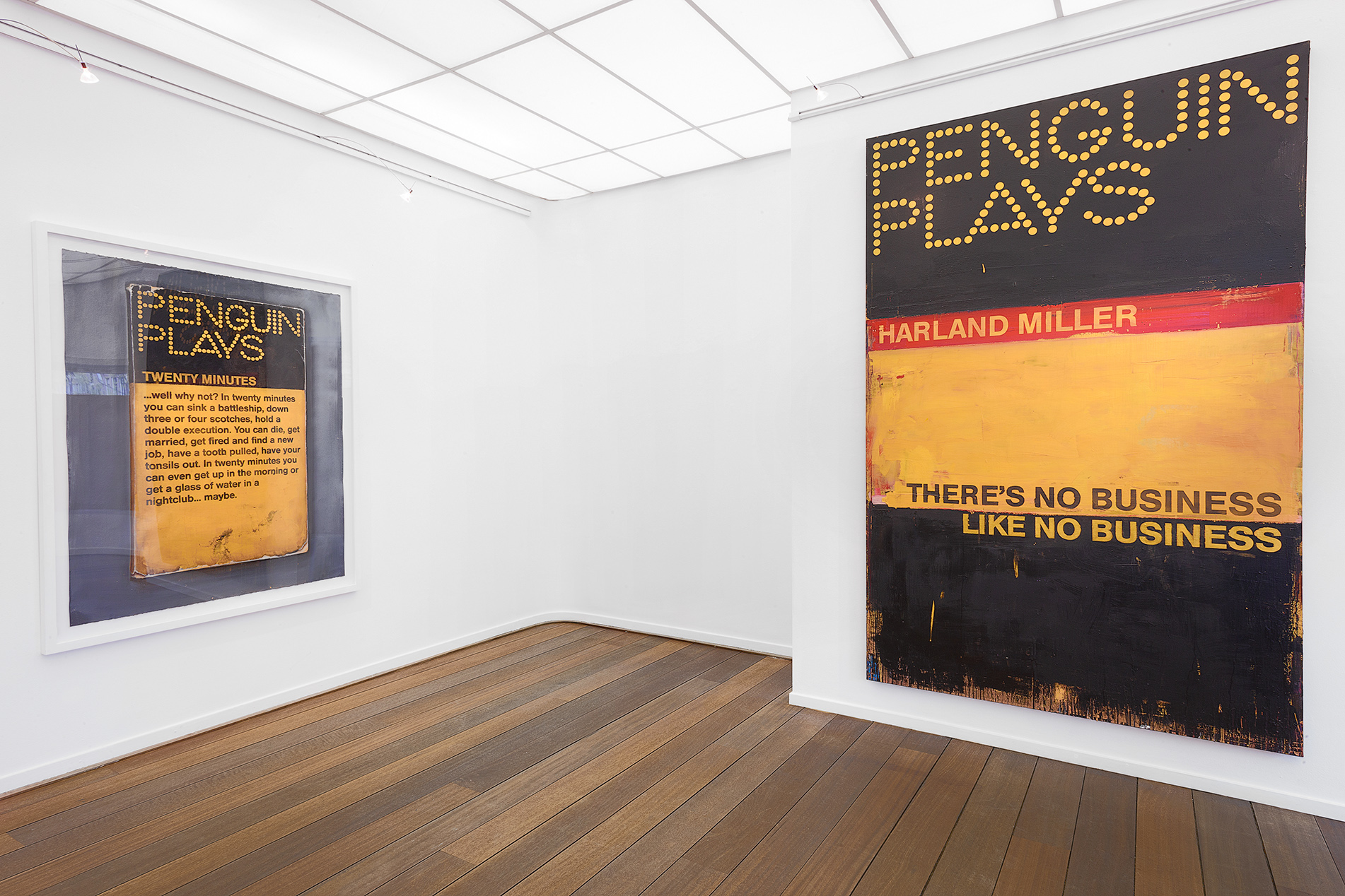 The English artist and writer Harland Miller is renowned for his large-scale, playful re-workings of Penguin book covers, from time-honoured tales by Hemmingway, Fitzgerald and Edgar Allen Poe to guides to northern British cities such as Blackpool and Grimsby. By blowing them up and giving them subversive new titles, Miller breathes new life into these classic book jackets, injecting them with contemporary satirical punch.