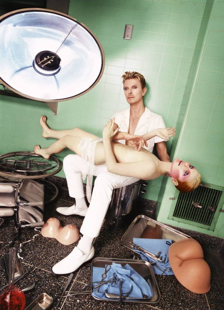 While the idea for the image David Bowie: Self Preservation was possibly Bowie’s, LaChapelle acknowledged that the musician’s iterations were so varied that it was inspiring to draw on representations of him throughout his career. Here, Bowie cradles a doll of himself in Aladdin Sane–era makeup that’s not far from LaChapelle’s previous iterations of Michelangelo’s Pietà(ca. 1498–99), even though the photographer’s version featuring Courtney Love bearing a Kurt Cobain figure is a more literal interpretation.The image was taken around the time Bowie was working on his album Outside, a concept album following a narrative of art and murder, and thereby skewed a little darker than LaChapelle said he was normally comfortable with. “I’m more humorous, colorful. The dark thing was never my way, but that’s what he wanted to do,” LaChapelle said of the production. “But it was a very fruitful shoot.”