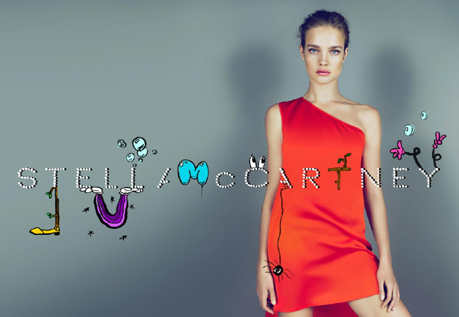 McCartney told WWD she was after ?something direct and simple, using Nataliaand key collection pieces, contrasted by humor and a human touch in the treatment of the logo.? McCartney is no stranger to the art world and has worked with artists including Robert Crumb, and last fall her campaigns featured the classic cast of Walt Disney Bambi. This time, instead of featuring familiar Disney characters, the ads feature Reigate's cartoonish lettering, top hats, paint splotches, pumpkins and spiders, which appear all over McCartney logo and the clothing (which includes some of our favorite pieces from her runway show including the latest pieces to hit Net-a-porter).