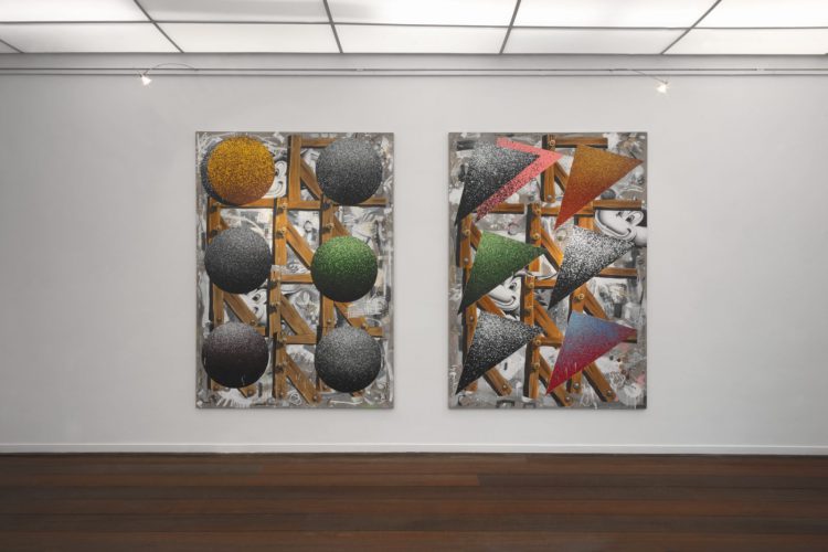 Barry Reigate's work is a powerful, eclectic and visually mind-blowing mix of symbolic pop imagery, geometrical design and multi-dimensional painterliness. Often on a large scale, with several components layered in spray paint, oil, pencil and other media, these arresting works both amuse and disturb; repel and seduce.